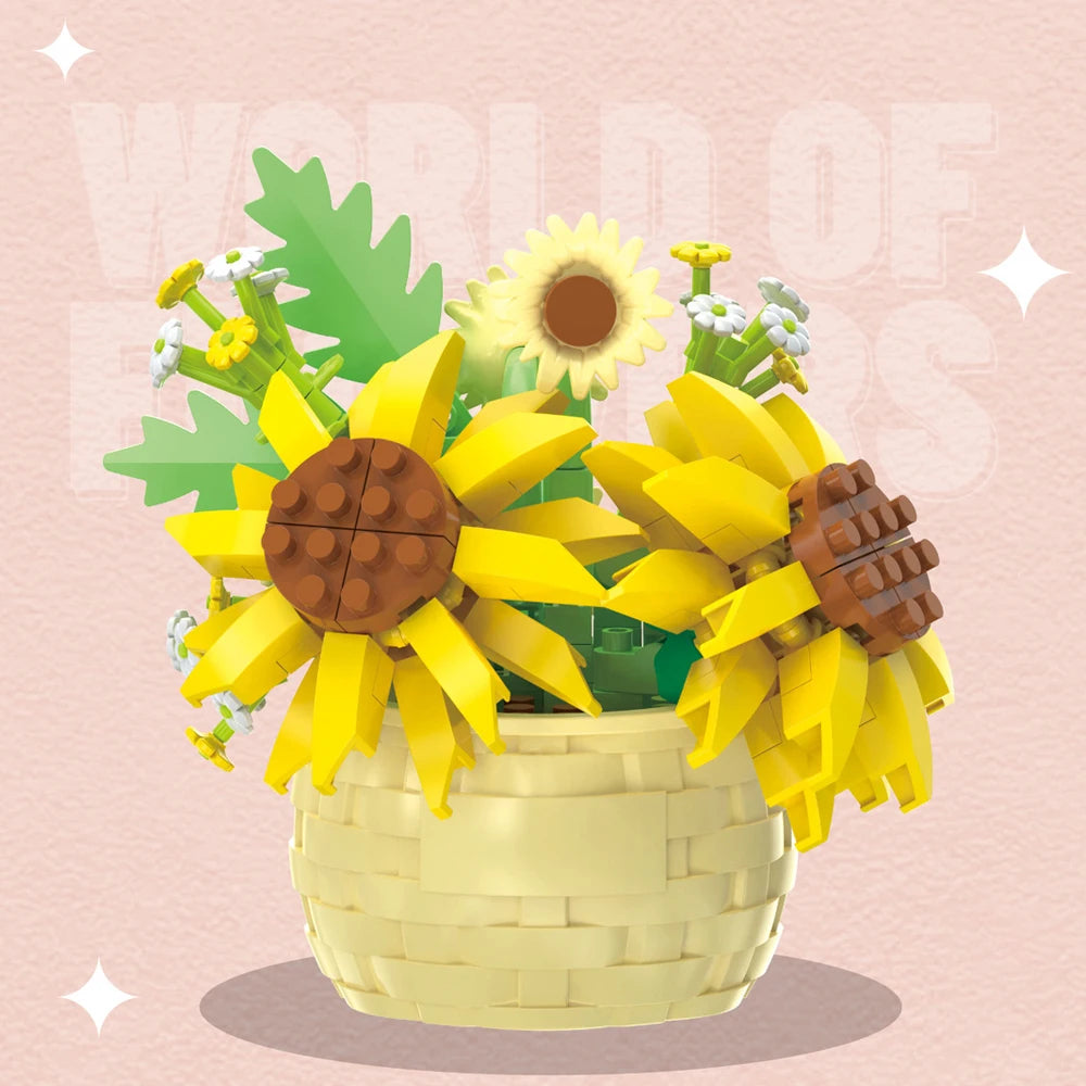Verwandeln Sie Ihr Zuhause in ein blühendes Paradies mit unserem Bouquet Blumen-Baustein DIY-Set. Mit diesem kreativen Modellbauset können Sie wunderschöne Rosen, Sonnenblumen und Sukkulenten als dekorative Mini-Gärten zusammenbauen. Ideal als Geschenk oder Dekoration für Mädchen, Frauen und alle, die kreative Bastelideen lieben.