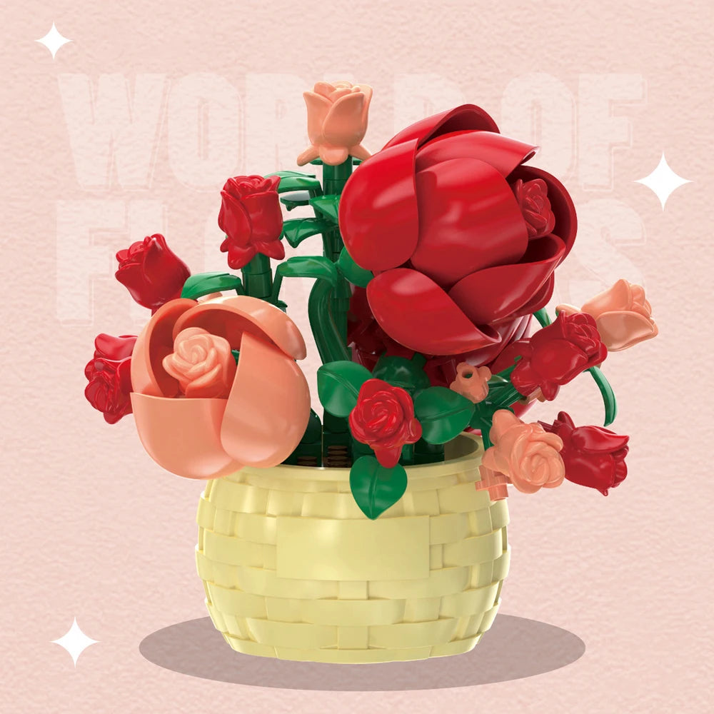 Dank der kompatiblen Klemmbausteine (ähnlich wie LEGO) können Sie fantasievolle Blumenarrangements gestalten und gleichzeitig Ihre Feinmotorik und Kreativität fördern. Ob als Schreibtischdekoration, Regalstück oder besonderes Geschenk – dieses Set ist ein charmantes Highlight in jedem Raum.