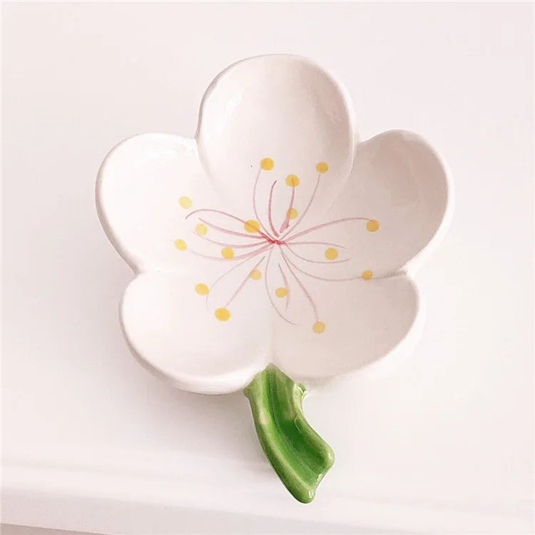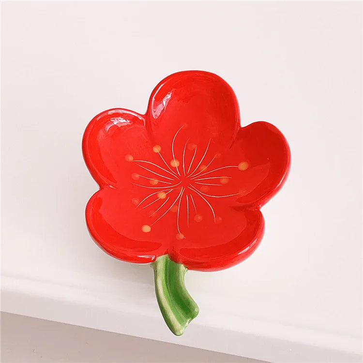 Kreative Keramik-Seifenschale – Pfirsichblütenform mit Abfluss